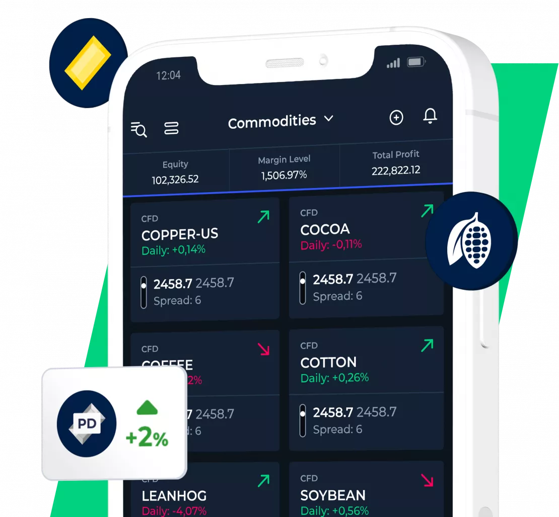 - Invest in CFDs for gold, oil, sugar, soy, etc.